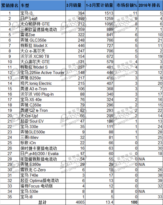 排名的后半部中有兩款車(chē)型值得一提,首先是奔馳B250e,其今年年初的銷(xiāo)量并不理想,但憑借3月份217的銷(xiāo)量躋身到第13的位置,創(chuàng)下近6個(gè)月以來(lái)最好成績(jī);其次是現(xiàn)代Ioniq電動(dòng)車(chē)的銷(xiāo)量也得到回升,3月份共計(jì)售出215輛,排名上升至第14位,據(jù)悉,起初銷(xiāo)量不濟(jì)主要是因產(chǎn)量受限。此外,飽受外界爭(zhēng)議的豐田全新普銳斯插電混動(dòng)版3月份共計(jì)售出54輛。