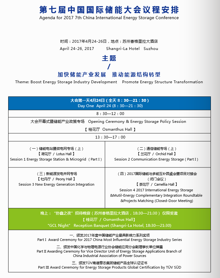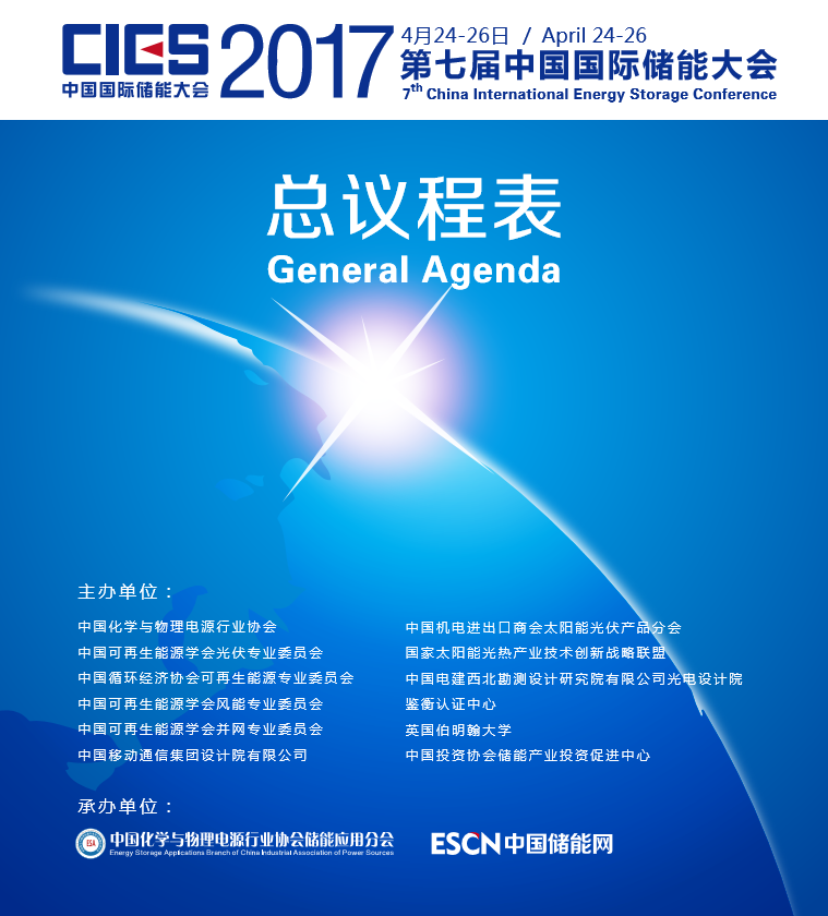 為此,由中國化學(xué)與物理電源行業(yè)協(xié)會聯(lián)合中國可再生能源學(xué)會光伏專業(yè)委員會、中國循環(huán)經(jīng)濟協(xié)會可再生能源專業(yè)委員會、中國可再生能源學(xué)會風(fēng)能專業(yè)委員會、中國可再生能源學(xué)會并網(wǎng)專業(yè)委員會、中國投資協(xié)會儲能產(chǎn)業(yè)投資促進中心、中國機電進出口商會太陽能光伏產(chǎn)品分會、國家太陽能光熱產(chǎn)業(yè)技術(shù)創(chuàng)新戰(zhàn)略聯(lián)盟、中國電建西北勘測設(shè)計研究院有限公司光電設(shè)計院、中國移動通信集團設(shè)計院有限公司、鑒衡認(rèn)證中心、英國伯明翰大學(xué)、協(xié)鑫集成、科陸電子、南都電源、猛獅科技、珠海銀隆、國軒高科、億緯鋰能等單位主辦,中國化學(xué)與物理電源行業(yè)協(xié)會儲能應(yīng)用分會與中國儲能網(wǎng)承辦的“第七屆中國國際儲能大會”將于2017年4月24日—26日在蘇州香格里拉酒店舉行。