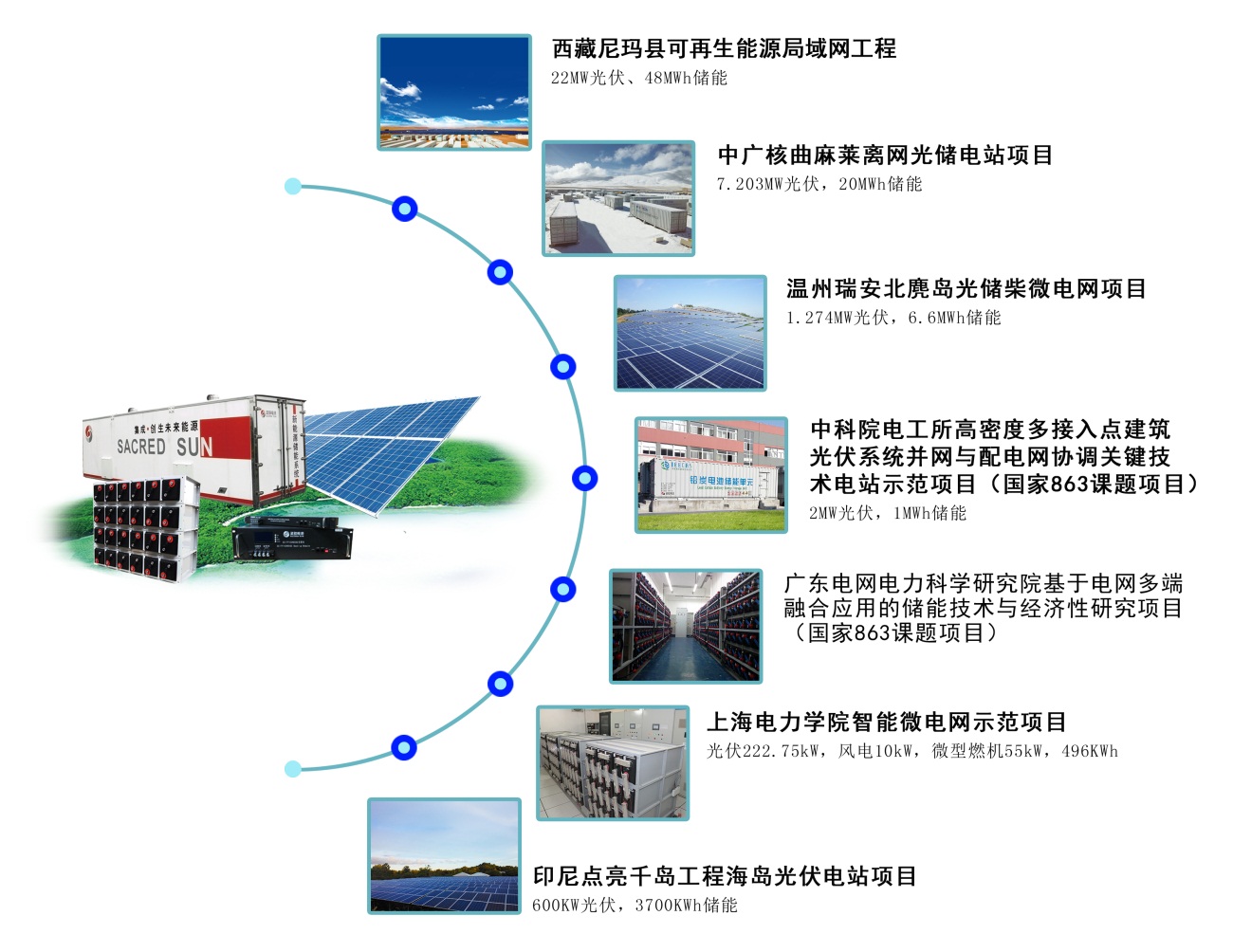 近年來(lái),圣陽(yáng)電源憑借FCP鉛炭電池領(lǐng)先的技術(shù)優(yōu)勢(shì)和成熟的儲(chǔ)能系統(tǒng)解決方案,參與建設(shè)世界海拔最高規(guī)模最大微電網(wǎng)項(xiàng)目“西藏尼瑪縣可再生能源局域網(wǎng)工程”;國(guó)家863計(jì)劃課題“國(guó)家電網(wǎng)浙江省電力公司高密度分布式能源接入交直流混合微電網(wǎng)上虞示范項(xiàng)目”;我國(guó)投運(yùn)最大規(guī)模光儲(chǔ)電站“中廣核曲麻萊7.203MW離網(wǎng)光儲(chǔ)電站”等多個(gè)重點(diǎn)項(xiàng)目工程。