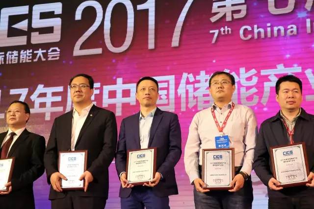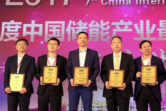 ▲陳博總裁(中)領取“2017年度中國儲能產業(yè)最具影響力企業(yè)”