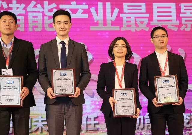 ▲王大為副總裁(中)領取“2017年度中國儲能產業(yè)最佳用戶側儲能示范項目獎”