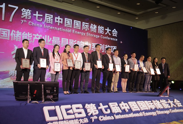作為本次大會(huì)的重頭戲,會(huì)議期間,中國(guó)國(guó)際儲(chǔ)能大會(huì)會(huì)務(wù)組與中國(guó)儲(chǔ)能網(wǎng)揭曉了“2017年度中國(guó)儲(chǔ)能產(chǎn)業(yè)最具影響力”系列獎(jiǎng)項(xiàng)的獲獎(jiǎng)名單。該獎(jiǎng)項(xiàng)已連續(xù)舉辦三屆,已成為儲(chǔ)能產(chǎn)業(yè)領(lǐng)域最具權(quán)威性以及影響力的獎(jiǎng)項(xiàng)之一,旨在激勵(lì)行領(lǐng)領(lǐng)軍企業(yè)銳意革新、積極進(jìn)取,推動(dòng)我國(guó)儲(chǔ)能產(chǎn)業(yè)持續(xù)健康發(fā)展。