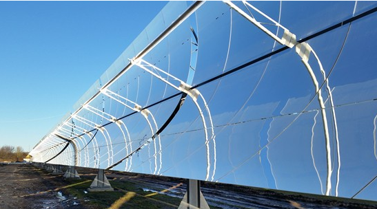 該項目采用槽式光熱發(fā)電技術(shù),電站擁有40個長達125米的集熱陣列,采光面積達26,929平方米,集熱管總長度5千米。根據(jù)太陽輻照強度的高低,系統(tǒng)可以實現(xiàn)供熱和供電,根據(jù)電價與供暖價格的波動,系統(tǒng)能靈活調(diào)整發(fā)電與送暖比例,達到效益最大化。在日照強烈的時候,系統(tǒng)輸出可達峰值16.6MWth。