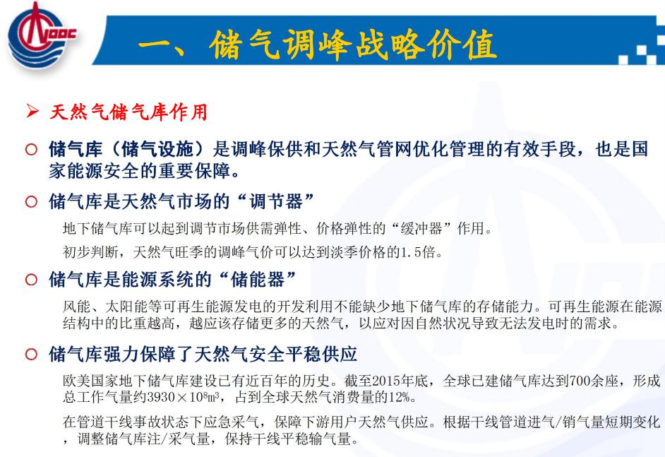 另外一個功能就是淡季儲氣,氣、田都要限產(chǎn),因為它沒有那么多需求。畢竟中國的電過剩,天然氣在淡季的時候就要關(guān)井限產(chǎn)。為了不限產(chǎn),配上地下儲氣庫是比較好的一個考慮。