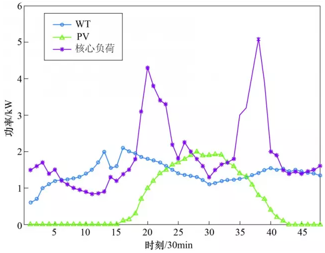 風能和太陽能雖然具有互補的特性,但因受自然季節(jié)和氣候的影響,使其具有較強的間歇性和隨機性,直接接入電網(wǎng)會引發(fā)電能波動,給微電網(wǎng)系統(tǒng)帶來電能質(zhì)量和穩(wěn)定性的挑戰(zhàn)。解決這一問題的關(guān)鍵在于儲能系統(tǒng),目前普遍使用蓄電池儲能來平衡供電,蓄電池的充放電效率較高,能夠適應負荷動態(tài)變化以及風光出力波動的特性。風能、太陽能等分布式電源和負荷以及儲能系統(tǒng)通過微電網(wǎng)能量管理系統(tǒng)進行有效整合,微電網(wǎng)能量管理系統(tǒng)通過協(xié)調(diào)各微電源、負荷和儲能系統(tǒng)的運行能夠提高微電網(wǎng)運行的可靠性和經(jīng)濟性,是系統(tǒng)穩(wěn)定運行的重要保障。