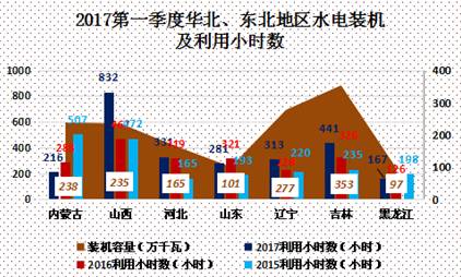 從水電設(shè)備平均利用小時數(shù)上看,2017年春季,兩個區(qū)域均處于低位,僅山西省水電設(shè)備平均利用小時數(shù)超過全國平均水平,為832小時,黑龍江省最低,為167小時。