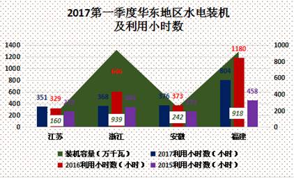 從水電設(shè)備平均利用小時數(shù)上看,2017年春季,華東地區(qū)僅福建省高于全國平均水平,為804小時,江蘇省最低僅為351小時。與去年同期相比,作為華東水電大省,浙江、福建水電設(shè)備平均利用小時數(shù)下滑幅度較大,分別下滑248小時、376小時。而江蘇、安徽表現(xiàn)相對穩(wěn)定,并出現(xiàn)一定幅度的上漲。