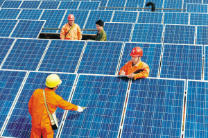4月23日,安徽省寧國市港口工業(yè)園區(qū)光伏發(fā)電站,寧國供電公司員工在對太陽能電池陣列進行最后的調(diào)試檢查。劉國珍 攝
