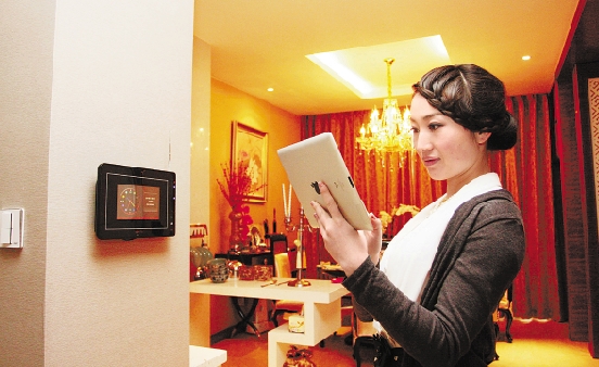 在客廳顯眼處,有一塊液晶顯示屏,“通過它,下班回到家前,您輕輕一按掌上電腦,燈光為您點(diǎn)亮,空調(diào)電視自動(dòng)開啟,還可以指令電飯煲燒上飯,一回家就可以聞到飯香。”客戶經(jīng)理小王輕點(diǎn)ipad演示,這些功能盡在眼前。這個(gè)顯示屏其實(shí)是實(shí)現(xiàn)家庭智能用電服務(wù)的核心設(shè)備——智能交互終端。