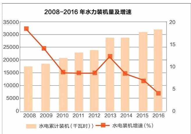 這種情況,直到2009年,節(jié)能減排的壓力加大后才有所緩解。在這一年,中國提出了2020年非化石能源消費(fèi)占能源消費(fèi)總量15%的目標(biāo),同時作出了2020年單位GDP能耗降低40%到45%的承諾。由于當(dāng)時的風(fēng)電和太陽能規(guī)模不大,因此在決策層看來,水電是最現(xiàn)實的推動節(jié)能減排的替代能源。自2010年起,中央政府開始逐漸對水電松綁,一批之前有爭議的項目紛紛重啟。這段曲折的經(jīng)歷投射到水電裝機(jī)量上,表現(xiàn)在2010和2011年的水電裝機(jī)增速出現(xiàn)了明顯的下滑趨勢,直到2013年后,西南地區(qū)解禁的水電項目逐漸落地投產(chǎn),才推遲了水電裝機(jī)增速放緩的勢頭。