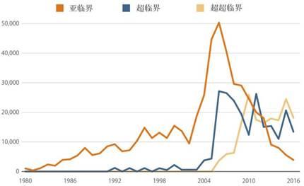 圖3 中國每年新增的燃煤發(fā)電裝機(jī)(MW)及技術(shù)分類