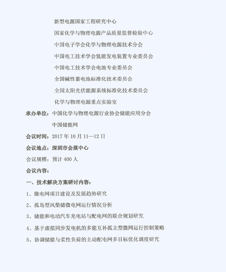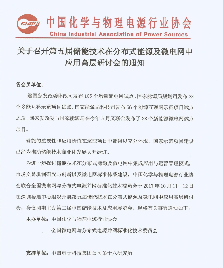 關(guān)于召開(kāi)第五屆儲(chǔ)能技術(shù)在分布式能源及微電網(wǎng)中應(yīng)用高層研討會(huì)的通知