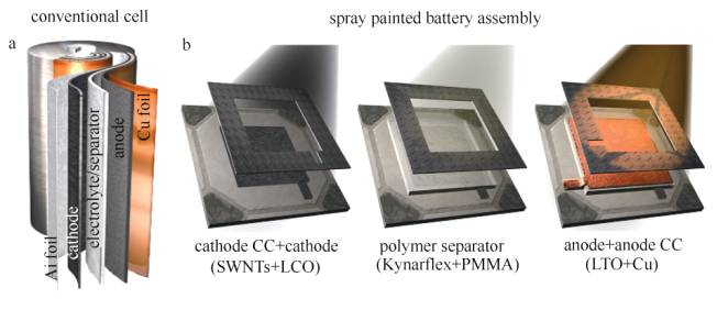 噴涂制備鋰離子電池的過程示意圖
