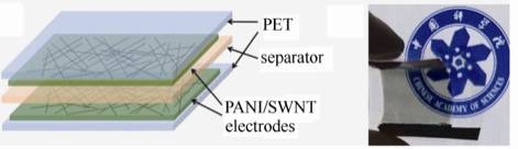 三明治結(jié)構(gòu)的柔性透明儲(chǔ)能器件的結(jié)構(gòu)與實(shí)物照片