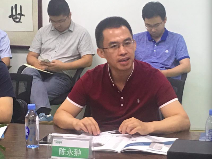 盛弘電氣副總經(jīng)理盛劍明向調(diào)研團代表介紹公司產(chǎn)品情況