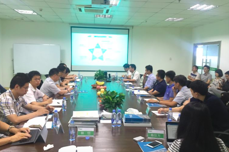 盛弘電氣副總經(jīng)理盛劍明、副總經(jīng)理肖學(xué)禮、產(chǎn)品總監(jiān)劉北、研發(fā)總監(jiān)范小波、海外新能源負責(zé)人張鈞衡接待了來訪的調(diào)研團。