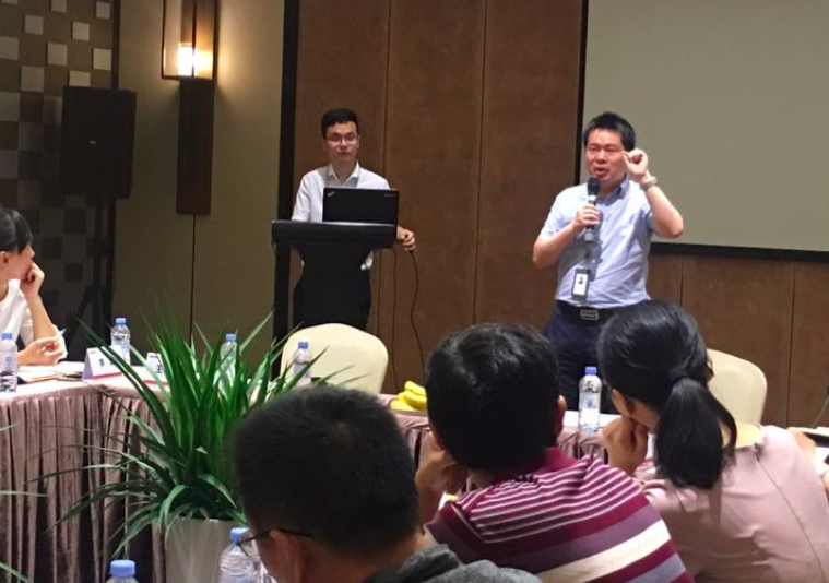 科陸副總裁桂國(guó)才向調(diào)研團(tuán)代表介紹公司情況