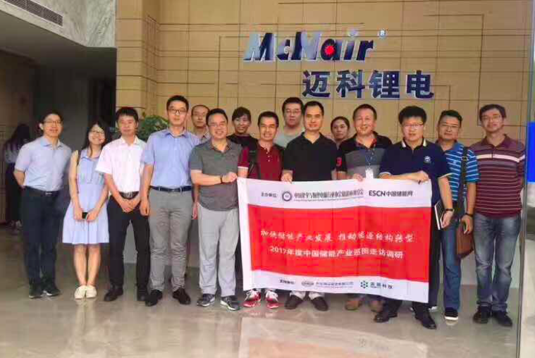 中國儲能網(wǎng)訊:2017年7月1日上午,中國化學與物理電源行業(yè)協(xié)會儲能應用分會組織的全國儲能產(chǎn)業(yè)巡回調(diào)研團來到東莞市邁科新能源有限公司(邁科集團旗下子公司,以下簡稱“邁科鋰電”)。邁科集團成立于2000年,主要經(jīng)營綠色環(huán)保的聚合物鋰離子電池、液態(tài)鋰離子電池、動力儲能電池等新能源產(chǎn)品。