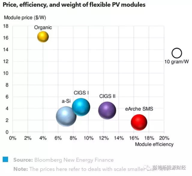 同最具可比性的MiaSolé組件相比,eArche組件的每瓦價(jià)格低三分之一,而相同面積內(nèi)的功率輸出則至少高三分之一。eArche模塊的優(yōu)勢(shì)在于可以增加光伏解決方案的靈活性,應(yīng)用與曲面或者是因承重問題無法安裝傳統(tǒng)組件的平面上。我們預(yù)計(jì)到2020年,這類特殊市場(chǎng)規(guī)模將從目前年均不足1MW,增至數(shù)百M(fèi)W。