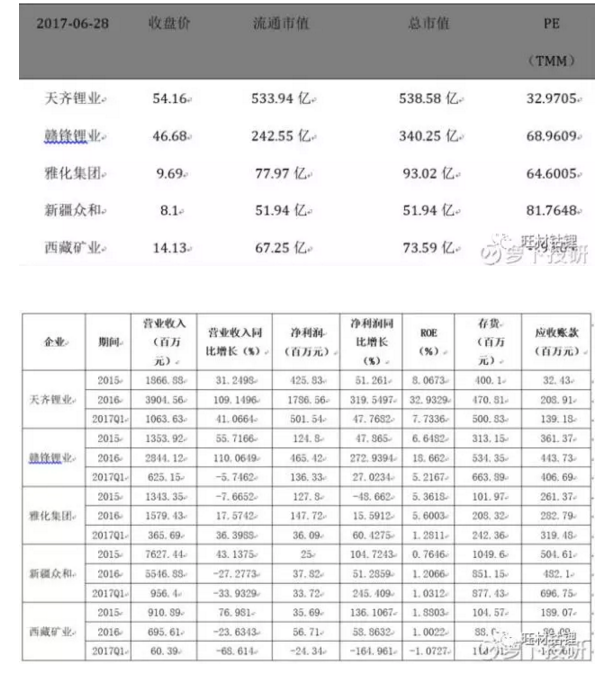 上市公司氫氧化鋰供給(噸),數(shù)據(jù)來源:公司公告,蘿卜投研(通聯(lián)數(shù)據(jù)) 上市公司對應(yīng)的財務(wù)數(shù)據(jù)如下: