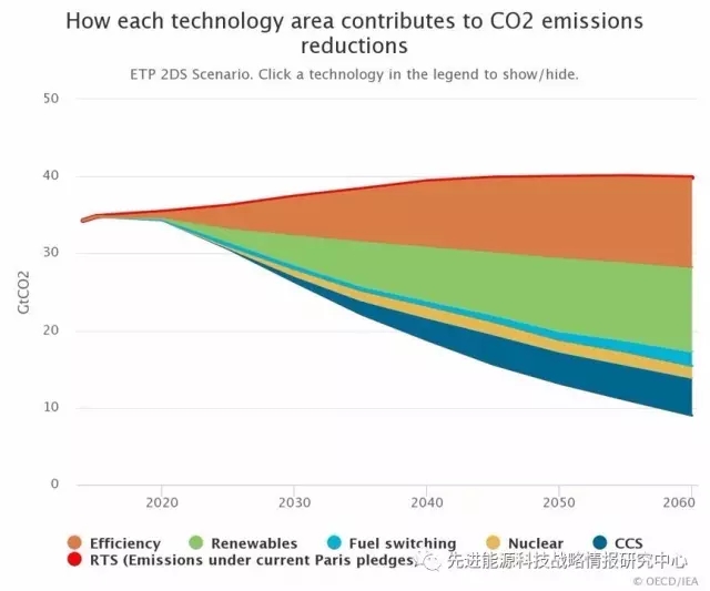 當前的發(fā)展路徑還不夠完善,深度脫碳化需要更多的努力以及持續(xù)的政治承諾。。報告提供了至2060年能源領域發(fā)展的三種途徑:參考技術情景(RTS)、2℃情景(2DS)和超越2℃情景(B2DS)。RTS提供了一個基準情景,考慮了各國現(xiàn)有的與能源和氣候有關的承諾。2DS和B2DS均符合國際政策目標的快速脫碳途徑。2DS情景已經(jīng)是能源技術展望報告系列的主要氣候情景,被決策者和利益相關者廣泛用來評估氣候戰(zhàn)略。B2DS情景首次著眼于按照國家在“巴黎協(xié)定”中更遠大的愿景,清潔能源技術發(fā)展到實際應用的極限,能夠起到多大的作用。