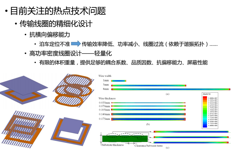 二是線圈問(wèn)題,因?yàn)樾枰畲蟮碾姶艌?chǎng)耦合,耦合線圈的設(shè)計(jì)非常重要。無(wú)線傳輸?shù)脑边吘€圈需要有最大的電磁耦合,如果一邊沒(méi)對(duì)齊,傳輸效率就會(huì)降低、傳輸功率就會(huì)變小,所以說(shuō)怎么對(duì)齊是一個(gè)問(wèn)題,而且本身線圈越大可能接收能力也越大,但線圈過(guò)大過(guò)重,放在汽車(chē)上就又不方便,所以這是一系列問(wèn)題。