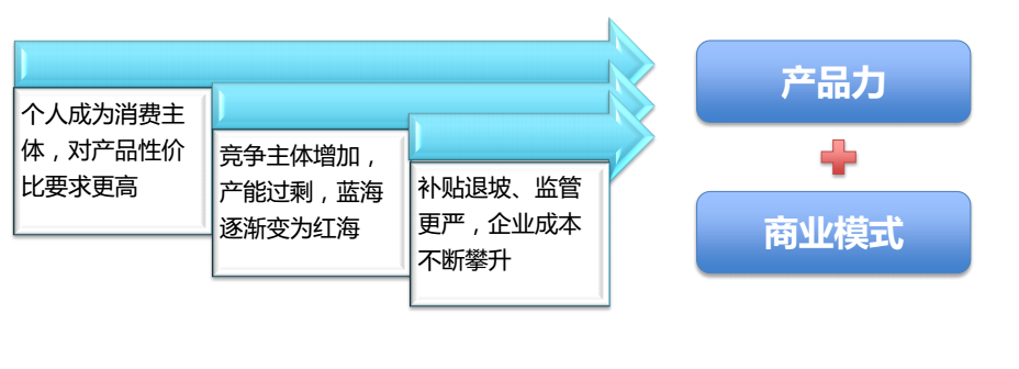 對于未來的新能源企業(yè)的核心競爭力應(yīng)該是兩大塊,一塊是產(chǎn)品力,因?yàn)樾履茉雌囌囀紫认蛩械目蛻籼峁┑氖且粋€(gè)產(chǎn)品,它是一個(gè)交通工具。但是,和傳統(tǒng)的汽車行業(yè)的從業(yè)者比起來,有上百年的積累,對于新能源行業(yè)的從業(yè)者來說,很難在短短的5年到10年內(nèi)完成別人用100年甚至更長時(shí)間完成所做的工作,所以未來新能源行業(yè)發(fā)展應(yīng)該是產(chǎn)品技術(shù)的創(chuàng)新和商業(yè)模式的創(chuàng)新相結(jié)合,向客戶提供一個(gè)更完美、更便捷、成本更低、性價(jià)比更高的一個(gè)綜合的出行方案。要解決客戶的痛點(diǎn),對產(chǎn)品的性價(jià)比要求更高,要解決企業(yè)面臨的現(xiàn)金流、成本包括市場售后服務(wù)各項(xiàng)壓力。但是如何去解決,那就是要找出如何把產(chǎn)品和商業(yè)模式結(jié)合,充分發(fā)揮產(chǎn)品的優(yōu)勢解決客戶的問題,同時(shí)利用商業(yè)模式的創(chuàng)新,降低由于新能源產(chǎn)品成本偏高帶來的困境。