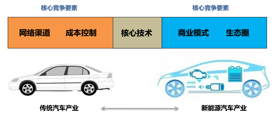 在傳統(tǒng)車的概念中,網(wǎng)絡(luò)、渠道、成本和技術(shù)是最大的核心競爭力,但是新能源產(chǎn)業(yè)中,傳統(tǒng)車所需求的技術(shù)、渠道,要增加商業(yè)模式和生態(tài)圈,構(gòu)建出一個(gè)完整的閉環(huán)系統(tǒng),這也是未來所有新能源整車企業(yè)都要采用的應(yīng)對方案。