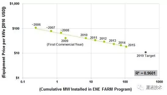 根據(jù)Navigant 研究,隨著產量的提升以及經濟規(guī)模的壯大,燃料電池成本呈現(xiàn)逐步下降趨勢。Navigant研究發(fā)現(xiàn)固定式燃料電池的成本下降速度明顯快于風能并且與太陽能成本下降速度保持在同一水平。燃料電池微電網(wǎng)的低成本投入將會獲得更快的成本回收周期。