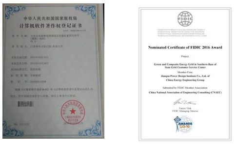 軟件著作權(quán)1項(xiàng)(下圖左)、菲迪克優(yōu)秀工程提名獎(jiǎng)1項(xiàng)(下圖右)