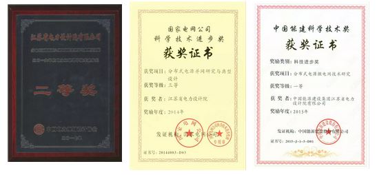 電力工程科技進(jìn)步獎(jiǎng)1項(xiàng)(下圖左)、國(guó)網(wǎng)公司科技進(jìn)步獎(jiǎng)1項(xiàng)(下圖中)、中國(guó)能建科技進(jìn)步獎(jiǎng)1項(xiàng)(下圖右)