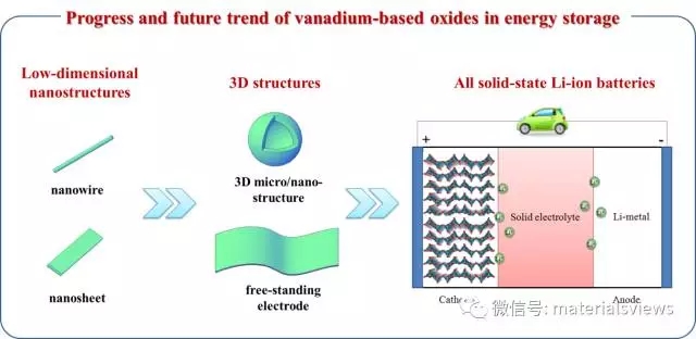 中國儲能網(wǎng)訊:開發(fā)綠色、環(huán)保、清潔的新能源及以此為基的新的能源結構已經(jīng)成為21世紀備受矚目的焦點與熱點,而在此新源結構中儲能則扮演著至關重要的角色。在各種儲能技術中,鋰離子電池(Li-ion battery, LIBs)和鈉離子電池(Na-ion battery, NIBs)被認為是兩種極具潛力的儲能技術,其中LIBs由于具有能量密度高、循環(huán)壽命長、自放電小、無記憶效應等優(yōu)點,已被廣泛應用于各種便攜式電子設備中,更被認為是近年來迅速崛起的電動汽車儲能系統(tǒng)的最佳解決方案。而NIBs則由于資源廣泛、成本低廉等優(yōu)勢,在大規(guī)模儲能領域中具有極大的前景。然而,隨著這些新應用的快速發(fā)展,它們也對LIBs和NIBs提出了更高的要求,如更高的能量和功率密度、更長的循環(huán)壽命、更低的成本等,而開發(fā)更為先進的電極材料則是實現(xiàn)上述目標最為關鍵的環(huán)節(jié)。作為一種典型的層狀晶體結構材料,釩氧化物由于具有放電比容量大、能量密度高、儲量豐富、成本低廉等優(yōu)勢,被認為是一種非常具有競爭力的下一代先進儲能材料。釩氧化物可被分為氧化釩(如V2O5, V6O13, V3O7·H2O, VO2 (B), V2O3等)和釩酸鹽(如Li3VO4, NaVO2, NaV2O5等),并且已被廣泛應用于LIBs和NIBs中。