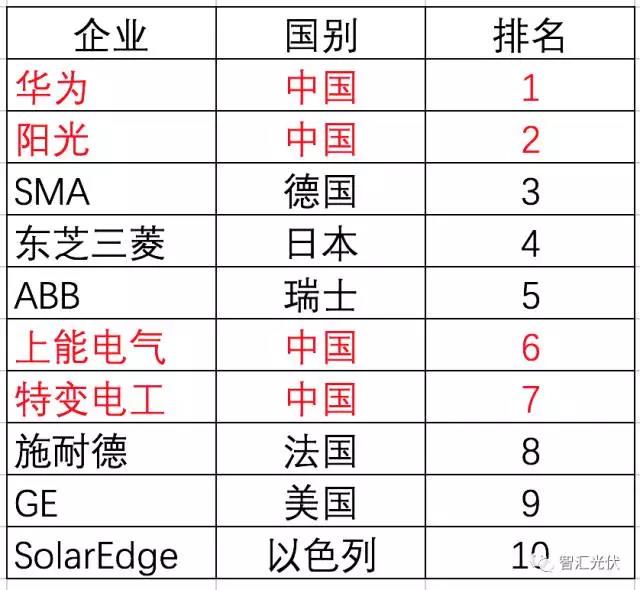 根據(jù)IHS的統(tǒng)計數(shù)據(jù),2016年,中國的逆變器前企業(yè)華為、陽光銷量分別位于全球第一、第二。全世界出貨量前10名中,中國企業(yè)占據(jù)4席。