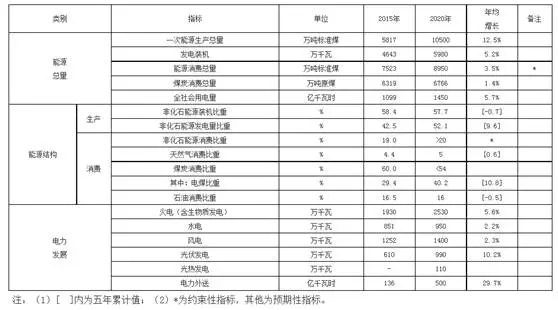 (三)可再生能源發(fā)展。到2020年,可再生能源發(fā)電裝機占電力總裝機接近60%,非化石能源占能源消費總量比重超過20%,天然氣比重達到5%以上,煤炭和石油消費比重控制在70%以內(nèi),棄風、棄光問題得到有效解決,新能源發(fā)電量達到全社會用電量的30%以上,單位地區(qū)生產(chǎn)總值二氧化碳排放強度較2015年下降17%。不同區(qū)域規(guī)?;L電場錯時出力、風光互補、火水電共同參與、需求側(cè)調(diào)控的調(diào)峰格局基本形成。