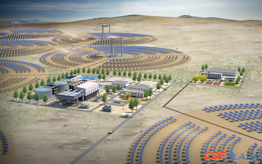 該項(xiàng)目采用二次反射太陽(yáng)能光熱發(fā)電技術(shù),技術(shù)來(lái)源方為江蘇鑫晨光熱技術(shù)有限公司,占地面積約2.47平方公里,擬建設(shè)15個(gè)集熱模塊,設(shè)置一套雙罐二元熔鹽儲(chǔ)熱系統(tǒng)(儲(chǔ)熱容量滿足汽輪發(fā)電機(jī)組滿負(fù)荷9小時(shí)的運(yùn)行需要),建成后將成為全球首座二次反射熔鹽塔式商業(yè)化光熱電站。