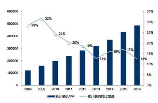 國(guó)內(nèi)風(fēng)電累計(jì)裝機(jī)容量