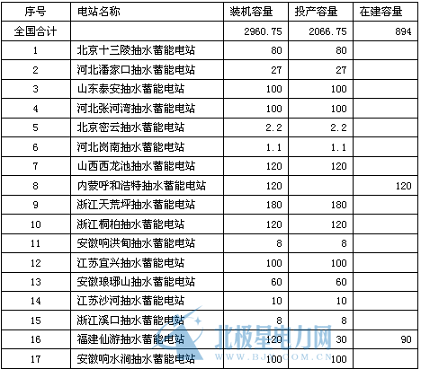 從中國抽水蓄能網(wǎng)獲悉,至2012年底我國抽水蓄能電站共34座,總?cè)萘?9607.5MW。我國抽水蓄能電站建設(shè)情況見下表: