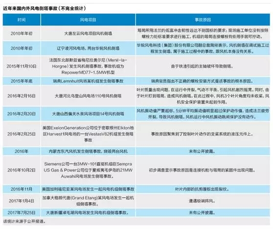 2016年2月16日和2月20日,大唐河北烏登山風(fēng)場(chǎng)和山西偏關(guān)水泉風(fēng)場(chǎng)發(fā)生風(fēng)機(jī)倒塔、造成設(shè)備損壞的事件。事后,大唐集團(tuán)通報(bào)披露了兩起事故的原因。通報(bào)內(nèi)容顯示,河北烏登山風(fēng)電場(chǎng)110號(hào)風(fēng)機(jī)倒塔事故的直接原因是葉片質(zhì)量出現(xiàn)問(wèn)題。山西偏關(guān)水泉風(fēng)場(chǎng)項(xiàng)目14號(hào)風(fēng)機(jī)倒塔,事故的直接原因是風(fēng)機(jī)振動(dòng)值嚴(yán)重超標(biāo),造成法蘭疲勞開裂,導(dǎo)致風(fēng)機(jī)倒塔。