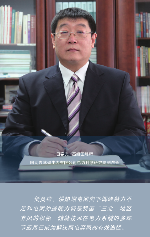 低負(fù)荷、供熱期電網(wǎng)向下調(diào)峰能力不足和電網(wǎng)外能力弱是我國“三北”地區(qū)棄風(fēng)的根源,儲能技術(shù)在力系統(tǒng)的多環(huán)節(jié)應(yīng)用已成為解決風(fēng)電棄風(fēng)的有效途徑。