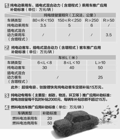 補助標準依據(jù)新能源汽車與同類傳統(tǒng)汽車的基礎(chǔ)差價確定,并考慮規(guī)模效應(yīng)、技術(shù)進步等因素逐年退坡。2014年和2015年,純電動乘用車、插電式混合動力(含增程式)乘用車、純電動專用車、燃料電池汽車補助標準,在2013年標準基礎(chǔ)上分別下降10%和20%;純電動公交車、插電式混合動力(含增程式)公交車標準維持不變。