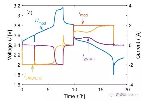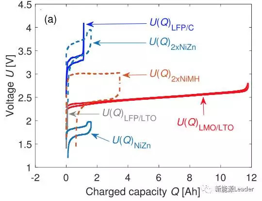 Alexander U. Schmid選取了LiFePO4和Li4Ti5O12材料作為實(shí)驗(yàn)對象,原因是這兩種材料對過充都具有一定的耐受能力,并且在完全脫鋰后電壓會(huì)快速上升,此時(shí)NiMH和Ni-Zn電池承擔(dān)起電流Bypass的作用,多余的電流會(huì)流入到NiMH和Ni-Zn電池之中,從而避免鋰離子電池發(fā)生過充。
