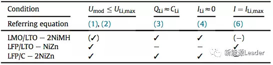 下表是對幾種電池與NiZN、NiMH電池并聯(lián)時(shí)的效果的總結(jié),從第一列可以看到幾種并聯(lián)方式都能夠使的電池組的最大電壓小于鋰離子電池的最大限制電壓,避免鋰離子電池發(fā)生過充。從第二列可以看到,除了LFP/LTO-NiZn電池不能充分利用鋰離子電池容量外,其他的兩種并聯(lián)方式都能夠充分的利用鋰離子電池的容量,因此也能夠?qū)崿F(xiàn)對電池組的均衡(第三列)。從第四列可以看到,受到并聯(lián)的NiZn、NiMH電池的影響,電池組的最大放電電流要小于鋰離子電池的最大電流,因此在實(shí)際使用中需要選用高功率型的NiZn、NiMH電池,以保證電池組的性能不降低。