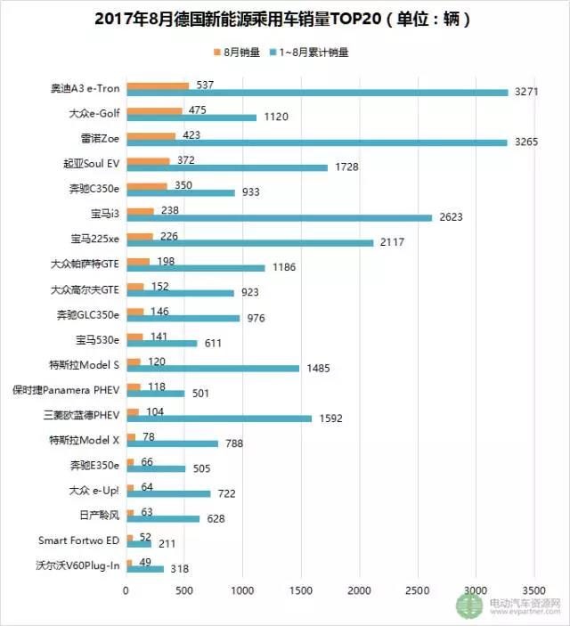 從8月月度銷量排名來(lái)看,8月銷量為537臺(tái)的奧迪A3 e-Tron奪得月度銷量冠軍;大眾e-Golf排在了第二位,8月銷售了475臺(tái);雷諾Zoe銷售了423臺(tái),排在第三位。