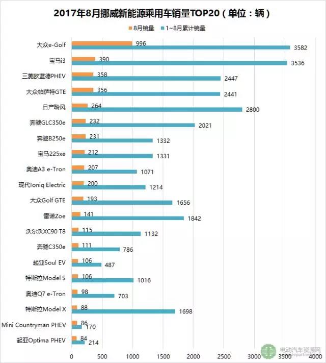 2017年8月,挪威新能源乘用車銷售了五千余臺(tái), 1-8月新能源乘用車?yán)塾?jì)銷量3.6萬(wàn)臺(tái)。從挪威汽車市場(chǎng)來(lái)看,新能源乘用車已經(jīng)占據(jù)了高達(dá)35%的市場(chǎng)份額。