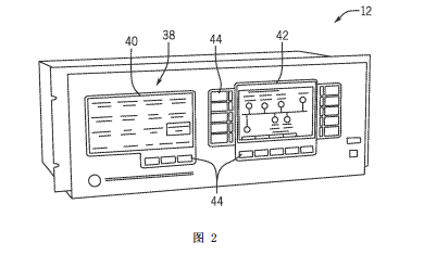 信號(hào)器顯示器40可配置成指示與微電網(wǎng)10內(nèi)的功能或操作有關(guān)的警報(bào)和/或產(chǎn)品信息。在某些實(shí)施例中,由信號(hào)器顯示器40所指示的警報(bào)可對(duì)應(yīng)于在分派調(diào)度過程或技術(shù)的階段(例如,讀取、優(yōu)化、寫入、實(shí)現(xiàn))期間可能出現(xiàn)的一個(gè)或多個(gè)類型的誤差和/或非期望事件。警報(bào)條件可通過用戶輸入來預(yù)設(shè),或可在微電網(wǎng)控制系統(tǒng)12的存儲(chǔ)器內(nèi)預(yù)先配置。例如,配置警報(bào)可涉及選擇警報(bào)何時(shí)響應(yīng)于特定誤差或非期望條件來提醒操作員的界限。此外,信號(hào)器顯示器40底部處的控制按鈕44可用于改變警報(bào)在前面板38上的觀看(顯示)并且在前面板38上關(guān)閉警報(bào)。在某些實(shí)施例中,控制按鈕44可用于關(guān)閉警報(bào)、循環(huán)通過主動(dòng)警報(bào)、觀看關(guān)于警報(bào)的附加信息(例如,非期望誤差或事件的描述和/或位置)等等。