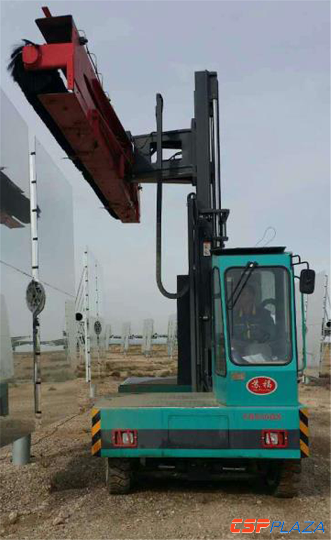 主營(yíng)叉車的鎮(zhèn)江蘇福機(jī)械有限公司通過(guò)持續(xù)的研發(fā)投入,成功研制出針對(duì)塔式平面反射鏡的太陽(yáng)能定日鏡專用清洗車,目前已在國(guó)內(nèi)部分項(xiàng)目上試用,效果良好。