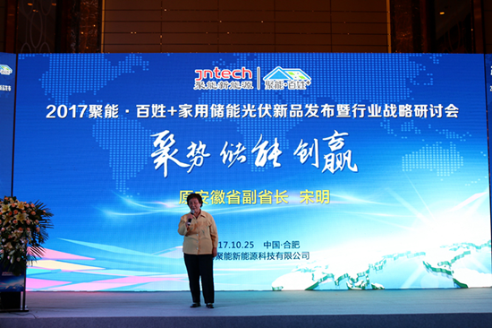 研討會上,原安徽省副省長宋明向參會嘉賓們介紹了當下國家對光伏產業(yè)的扶持。與此同時,作為聚能新能源對分布式光伏系統(tǒng)與儲能系統(tǒng)進行完美融合的新成果,聚能“百姓+”家用儲能光伏發(fā)電系統(tǒng)正式發(fā)布,打破傳統(tǒng)戶用光伏系統(tǒng)模式,創(chuàng)造新的儲能光伏品牌理念。