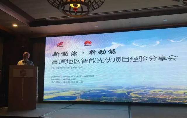 中國儲能網(wǎng)訊:2017年10月25日,在“日光之城”拉薩,由神州數(shù)碼(深圳)有限公司主辦,中國電力報(bào)協(xié)辦,華為技術(shù)有限公司承辦的以“新能源·新動能”為主題的高原地區(qū)智能光伏項(xiàng)目經(jīng)驗(yàn)分享會成功舉辦。來自政府、電網(wǎng)公司、行業(yè)協(xié)會、EPC等領(lǐng)導(dǎo)專家會聚一堂,就“西藏光伏發(fā)展形勢及政策”、“光伏扶貧”、“離網(wǎng)光伏發(fā)展趨勢及解決方案”、“高海拔地區(qū)光伏電站建設(shè)與運(yùn)維”等熱點(diǎn)話題進(jìn)行了交流與實(shí)踐經(jīng)驗(yàn)分享。