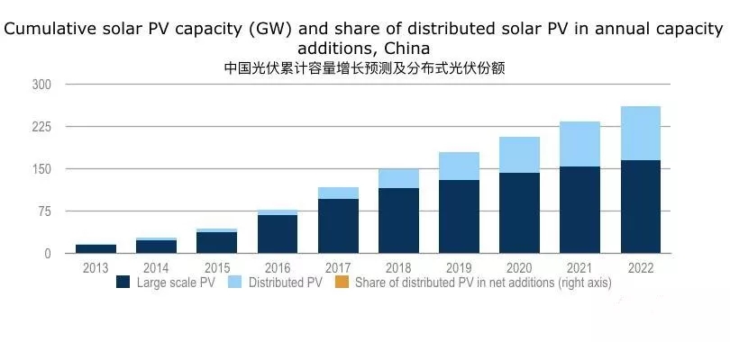 據IEA預測,中國將在未來5年引領清潔能源發(fā)展。其中,到2022年,中國60%的新增光伏裝機都來自于分布式光伏。
