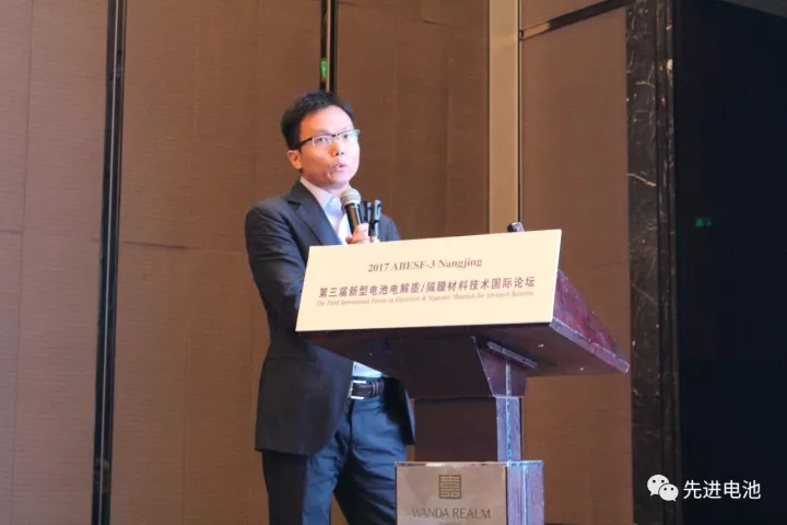 中國儲(chǔ)能網(wǎng)訊:2017年10月18日-19日,由中國化學(xué)與物理電源行業(yè)協(xié)會(huì),中國電子科技集團(tuán)公司第十八研究所共同主辦,北京中涂國際會(huì)展有限公司承辦,上海恩捷新材料科技股份有限公司、深圳市新嘉拓自動(dòng)化技術(shù)有限公司、廣州紅運(yùn)機(jī)械冠名的兩年一屆的 “第三屆新型電池電解質(zhì)/隔膜材料技術(shù)國際論壇”(ABESF-3)在南京舉行。在“下一代鋰離子電池電解質(zhì)研究進(jìn)展”分論壇上,來自美國萬向A一二三股份公司許夢清博士做了“Development of Advanced Electrolytes for Low Voltage and High Energy Lithium-ion Batteries”的主題發(fā)言。